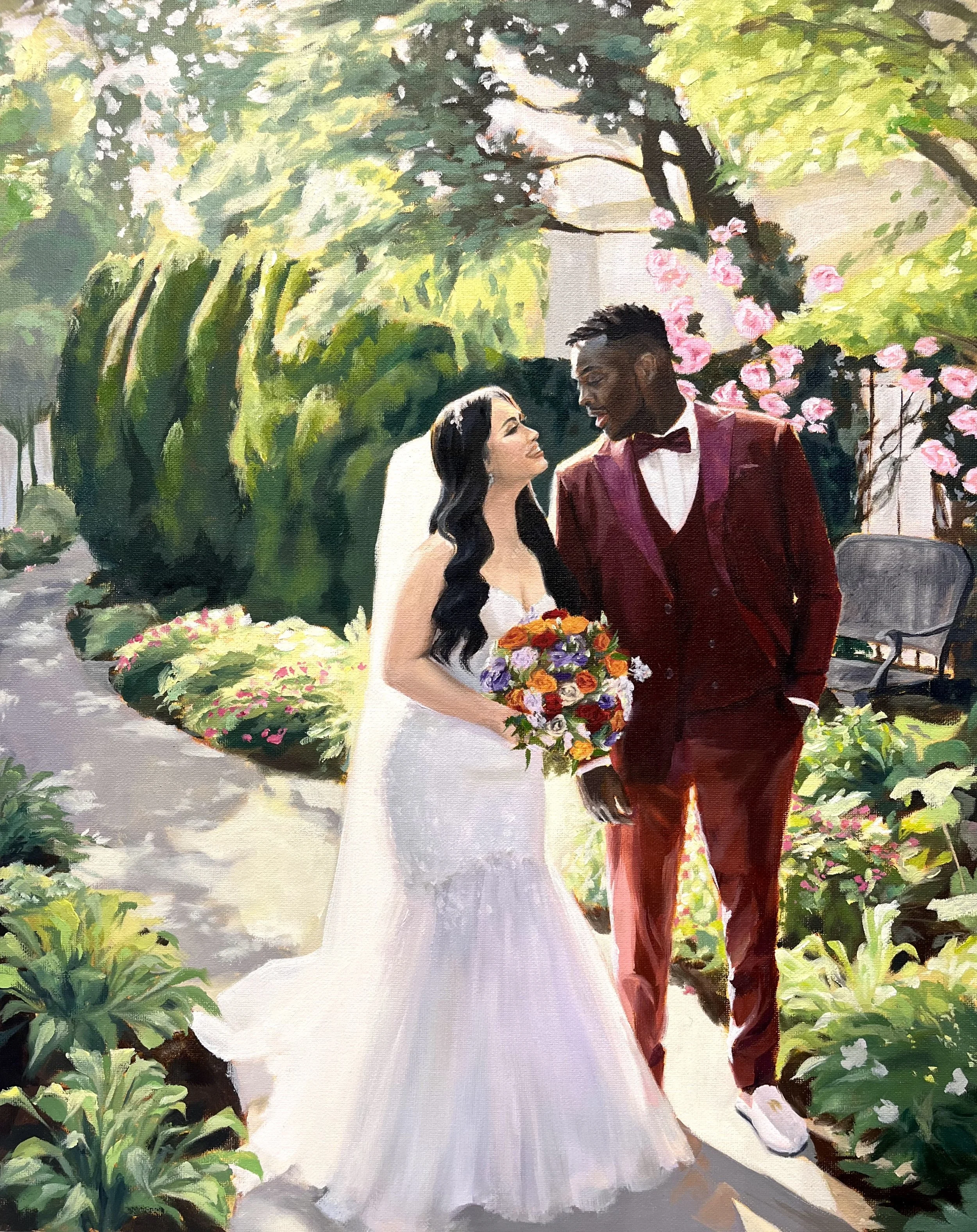 Includes consultation, up to 8 hours of live painting, and studio finishing. Oil paint on canvas, starts at $3000